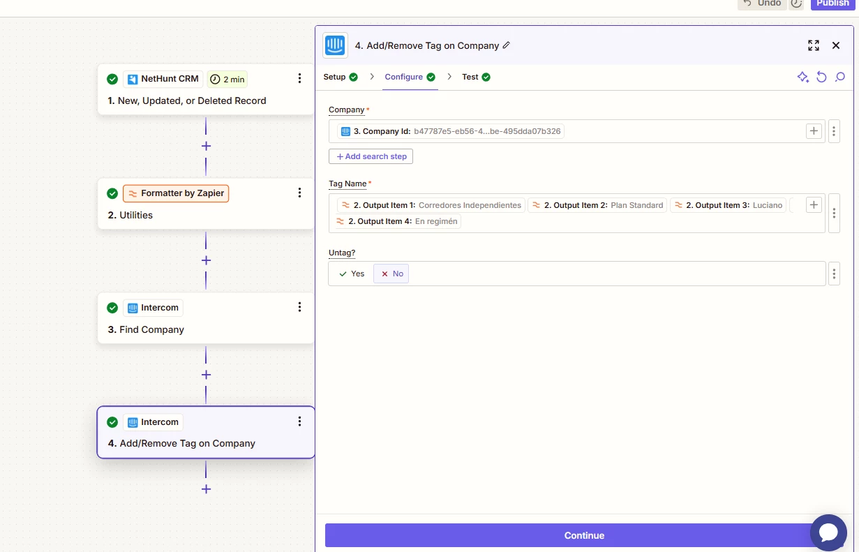 Hello, I’m having an issue with my Zap where I’m trying to send multiple tags from NetHunt CRM to Intercom, but the tags are getting grouped into one single tag, instead of appearing as separate tags in Intercom.