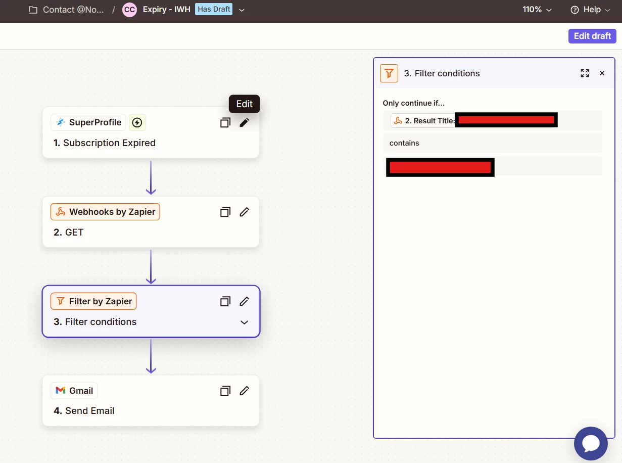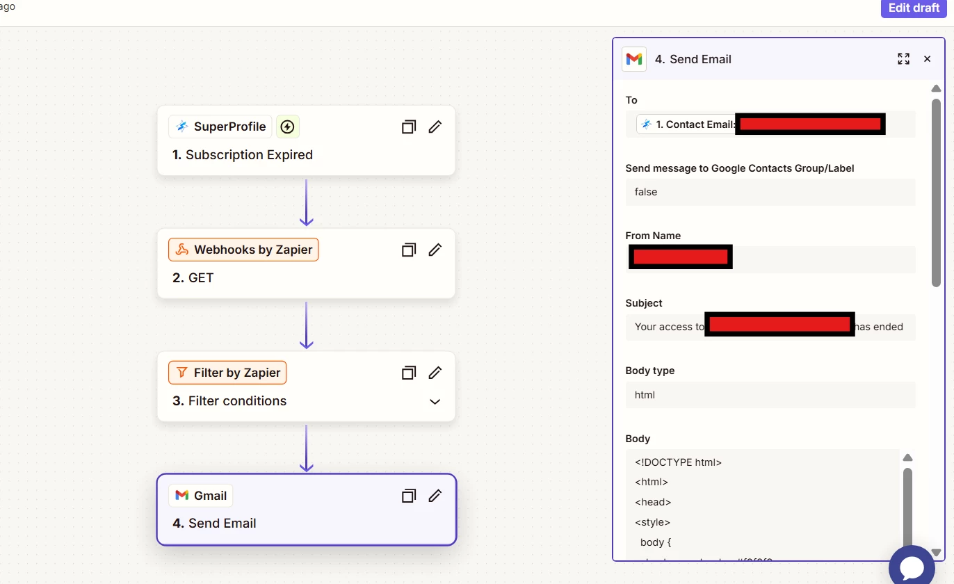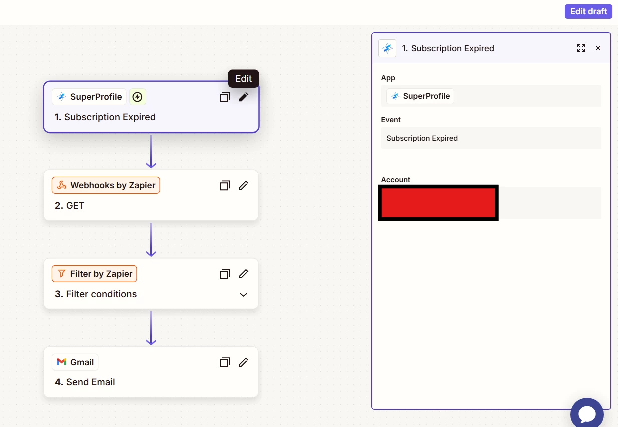 I have 500+ members in my Telegram group that have subscribed to my service via SuperProfile. Every time a user’s subscription ends, I want to be able to send a mail to the user informing them about the same. I have multiple Telegram groups so I needed to add a filter step to only send the mail for the specific product.