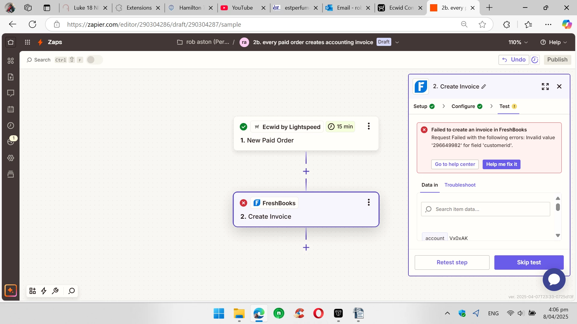 We are developing a zap to map a paid order from Ecwid e commerce to fresh books. The mapping seem to be accurate but it's very puzzling for a particular field not be mapped have a look at the screenshots and you'll see what I mean
