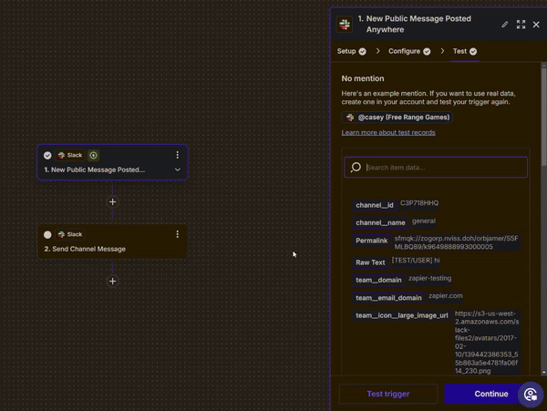 This workflow was working in the past and now does not return a message after the keyword is mentioned. This Zap also does not function if I ‘Skip Test’ and use the placeholder test data. Any advice would be greatly appreciated.