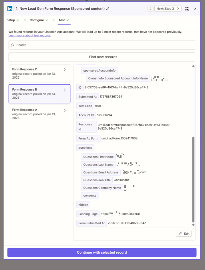 Hi can’t test if my lead gen form for my LinkedIn add is conneted to my zoom registration since I am the host myself. Is there any way to work around this? I would just want to make sure that it is working.