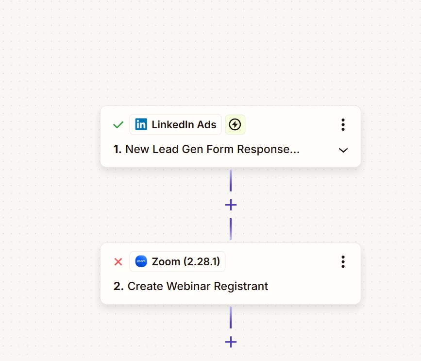 The idea is that whenever someone on linkedin add their contact info for the lead gen form on Linkedin they should automatically also be registered in zoom (so they do not need to do this extra step themselves).