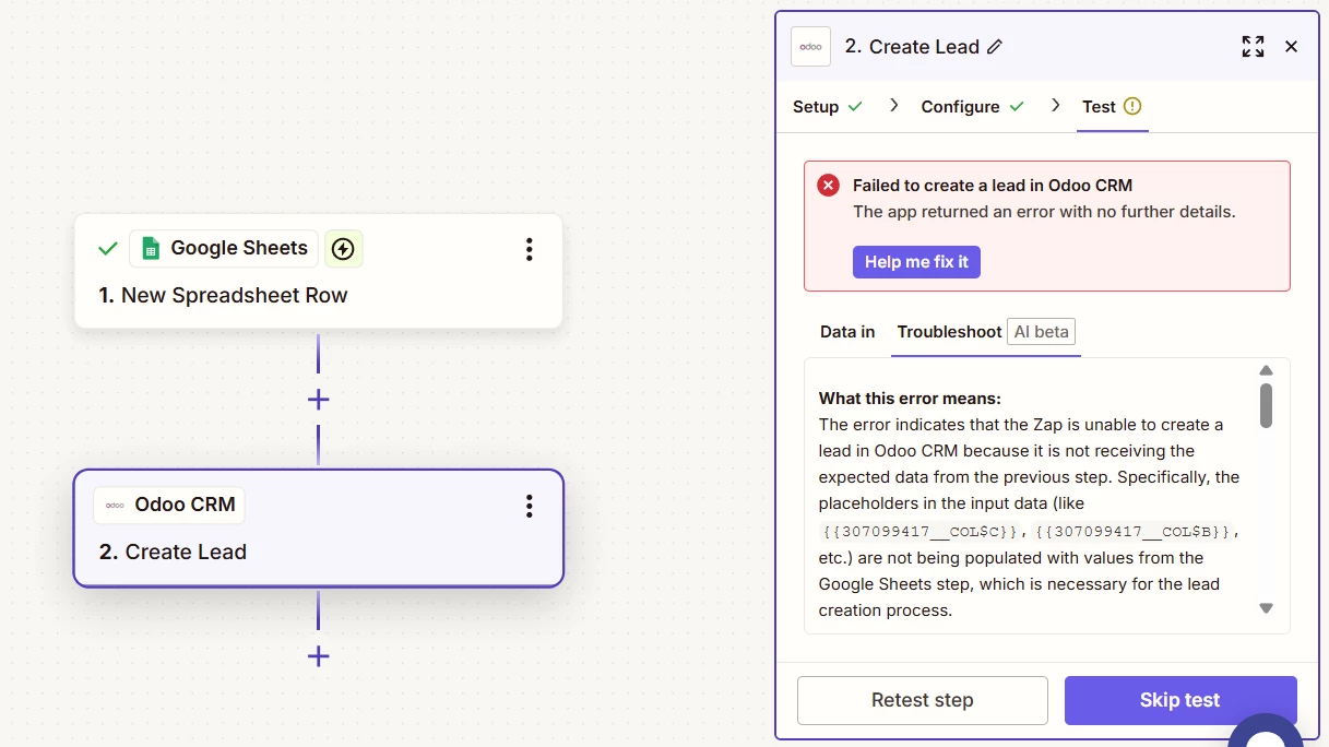 Constantly failing to connect to Odoo now, but used to work before. Now also excel failure is making automations with Zapier pointless. Help me fix this please.