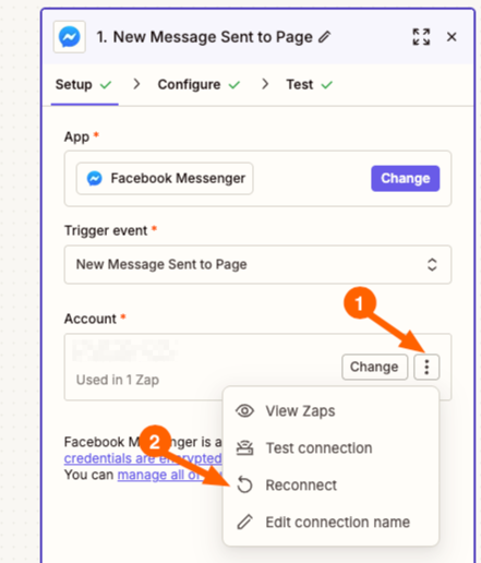 After reconnecting and configuring the trigger, publish your Zap and send a real message to your Facebook Page to see how the actual runs perform. This will help us determine if the webhook connection is working properly with live data.