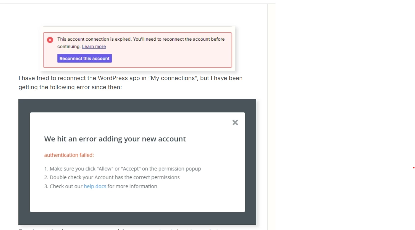 Hello, when I first got on zapier it connected to my word press a few times, now I continue to get these windows