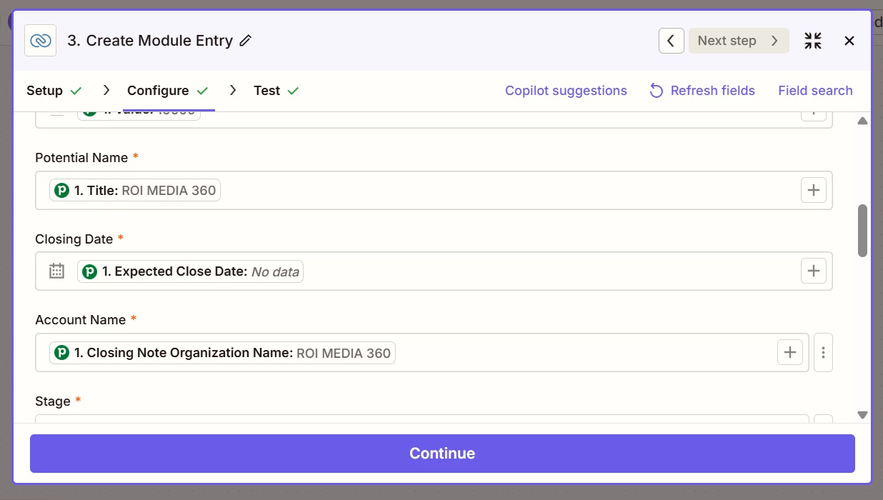 1. new or updated deals in pipedrive mapped to zoho crm deal section