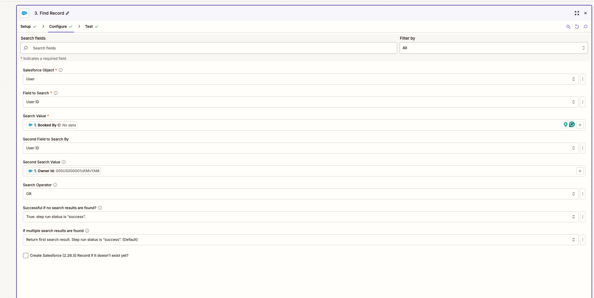 I have a Search for related record in Salesforce node that is set up to read search value 1 OR search value 2, but keeps failing because there is no value in search value 1. There is a search value for the second option.
