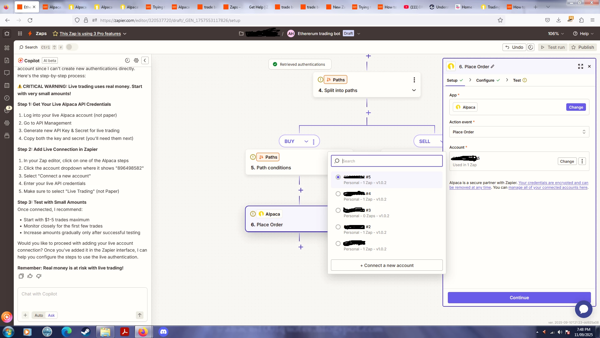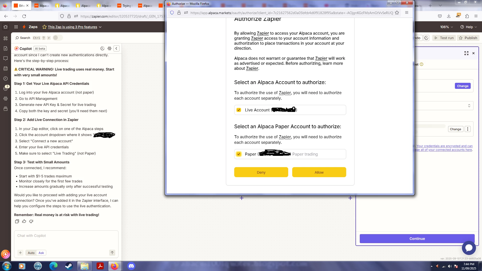 Trying to connect my Alpaca paper trading account to Zapier but I cant please help!!!