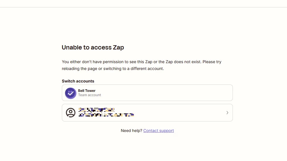 You don’t have permission – The Zap is in an account or workspace that you don’t have access to.
