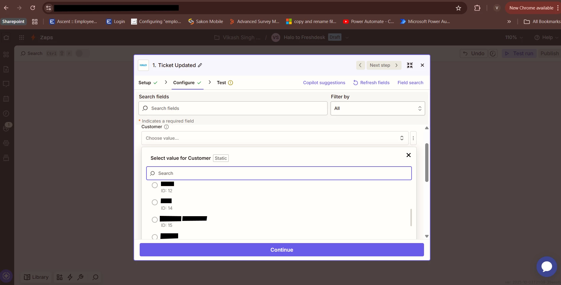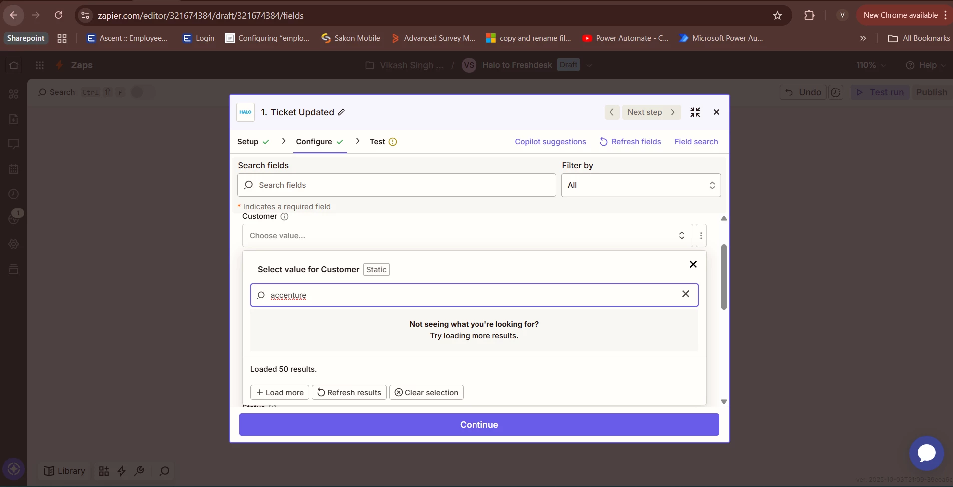 I’m creating a Zap to update tickets from Halo to Freshdesk, but in the Halo Connection app, I can’t see all customers in the dropdown under Configuration > Customer.