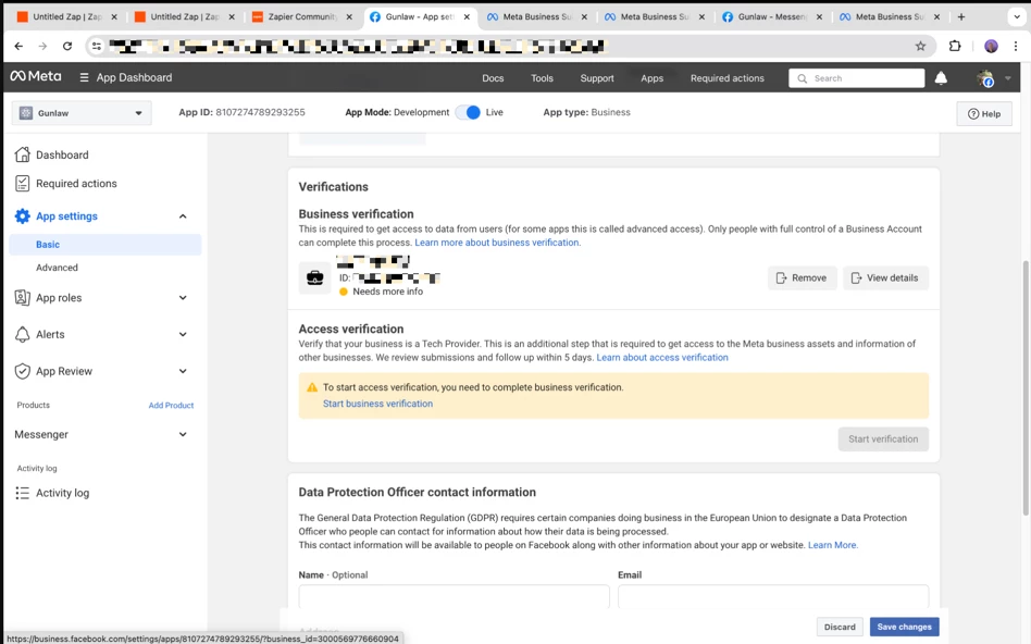 I have created an app called Gunlaw inside of facebook business suite, not sure if I did it right or not.