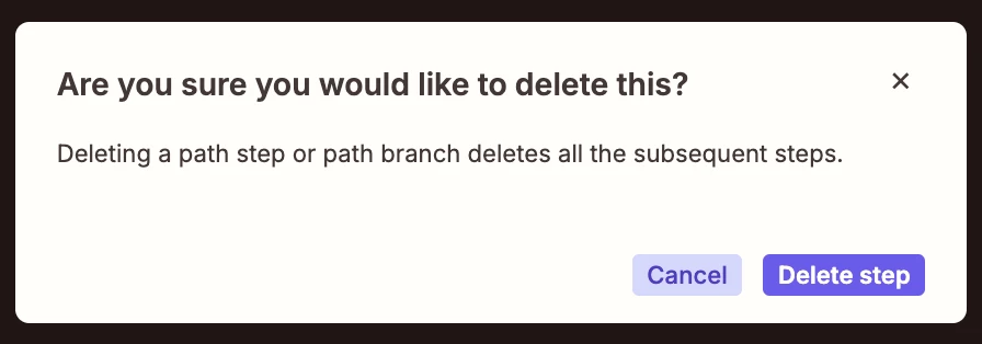 I added a step between two existing activities using the built-in “Paths” tool. After testing, I decided to delete this Paths step. However, when I removed it, all the following steps in the workflow were also deleted automatically.
