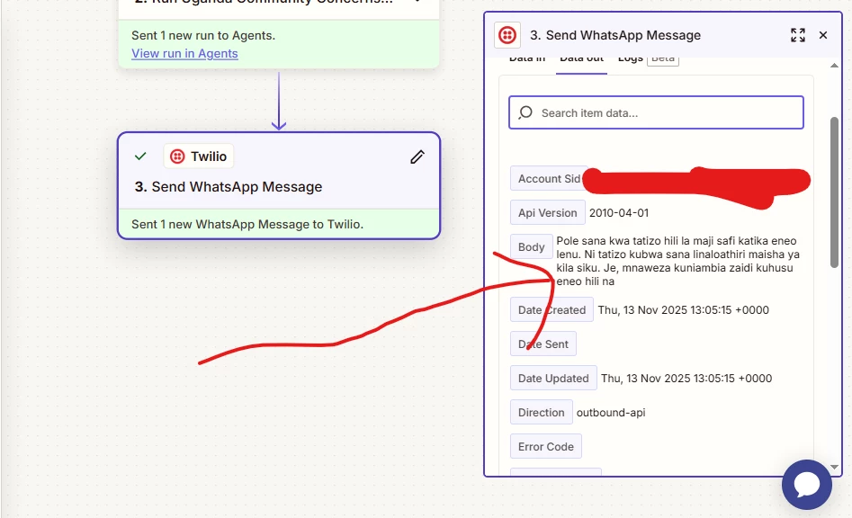 I need help. I integrated Twilio Sandbox for sending and receiveing messages with my zapier agent handling the Responses to users but i have realised the messages my agent genarates are all being cut short what could be the problem ??