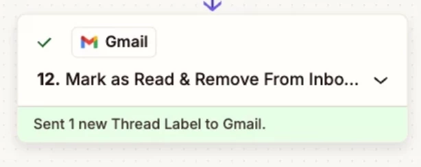 For some reason, sometimes this Zap triggers twice for same email. So we added a filter. We store a key in storage and if its value is 1, then we skip that otherwise continue and set the value of key to 1 so next time its skipped.