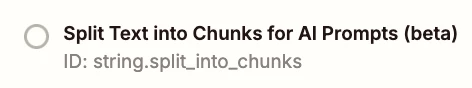 There is a Zap action to try to add: Formatter > Text > Split Text into Chucks for AI Prompts