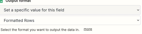 I had to used JSON because the other options raw or formatted works fine in the example zap but the result in chat gpt using the custom action does not work. The output is not even truncated, it is three dots [...], so chat gpt gets no information. See bellow..