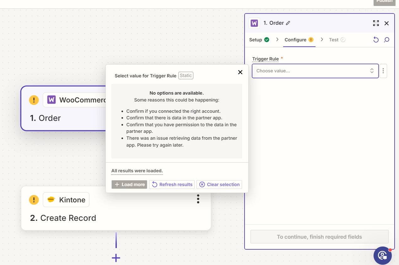 when i set woocommrece as trigger, and tried to set up trigger rule,