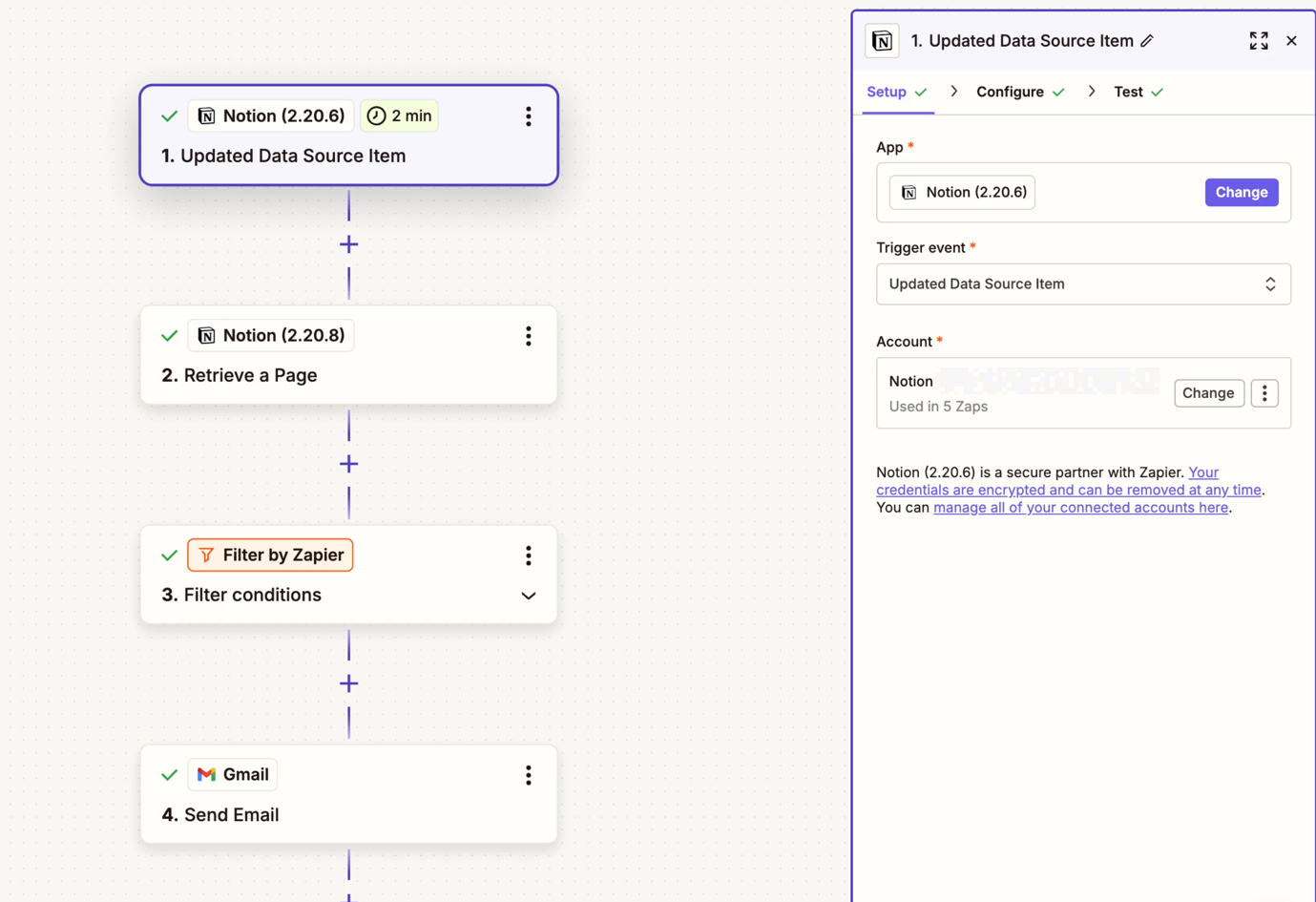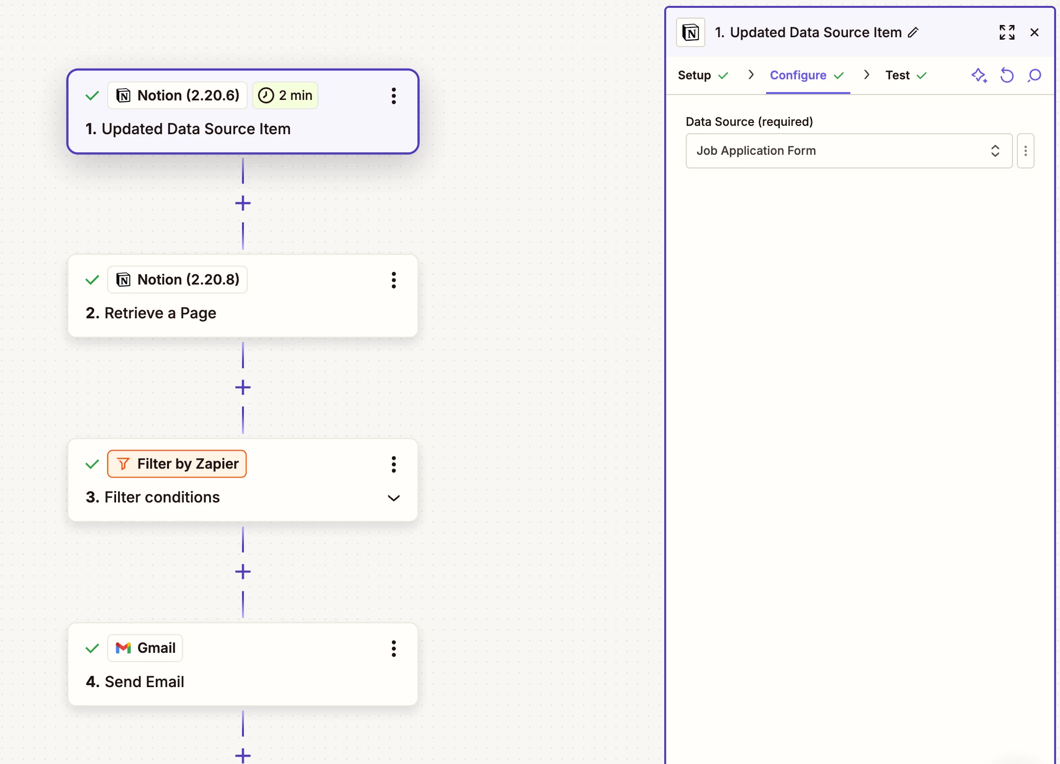- Updated Data Source Item in Notion, connected to by job application database. This retrieves some basic data from the database such as name, email etc for each of my applicants.