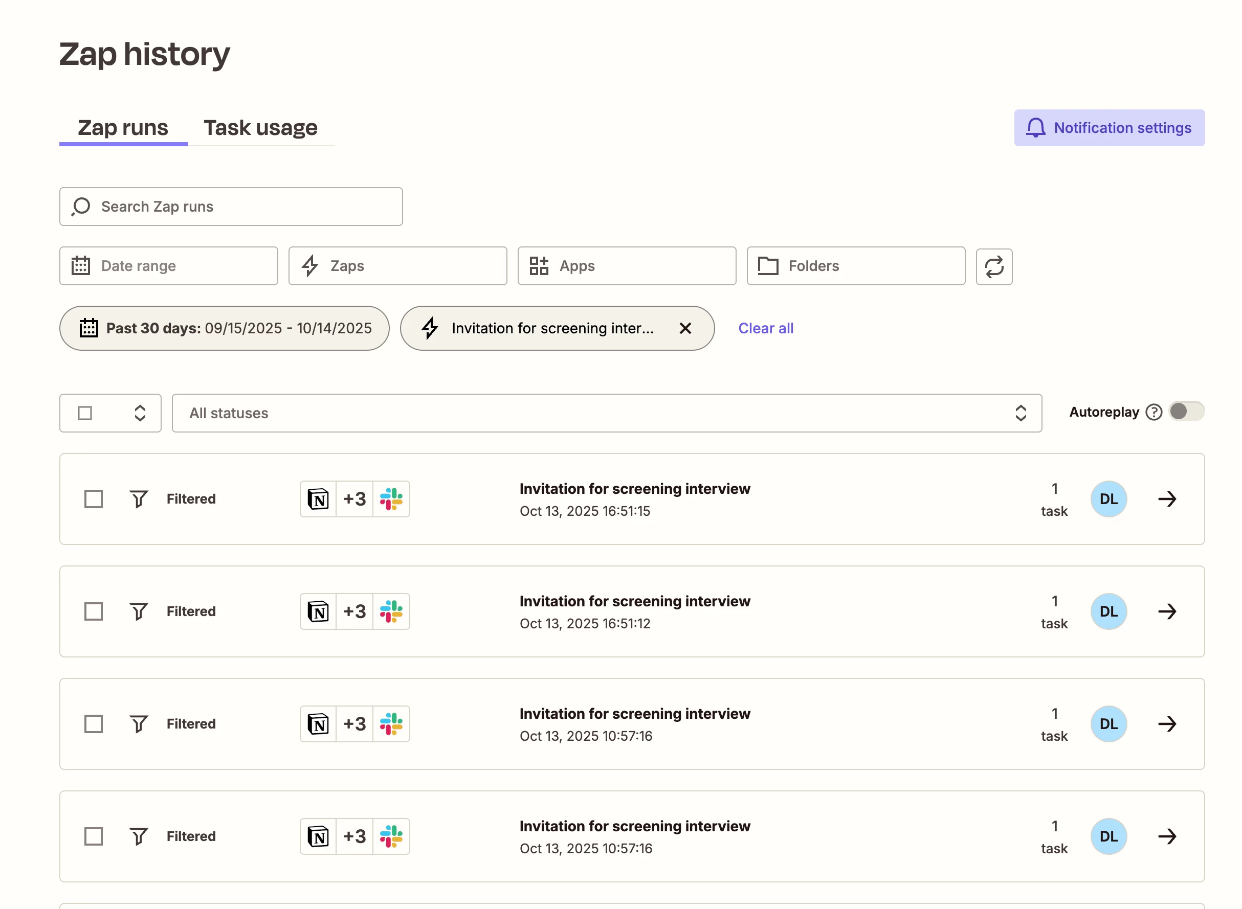 - Only proceed if the a select column in the database (“send invitation for screening interview”) reads “yes”