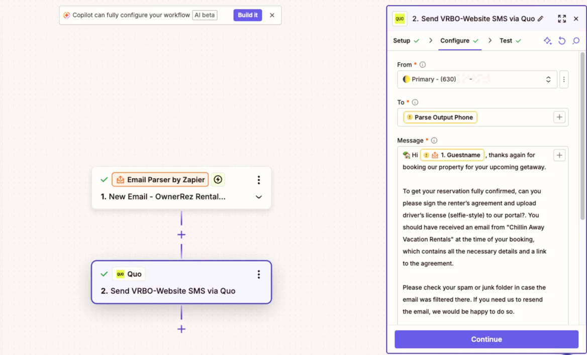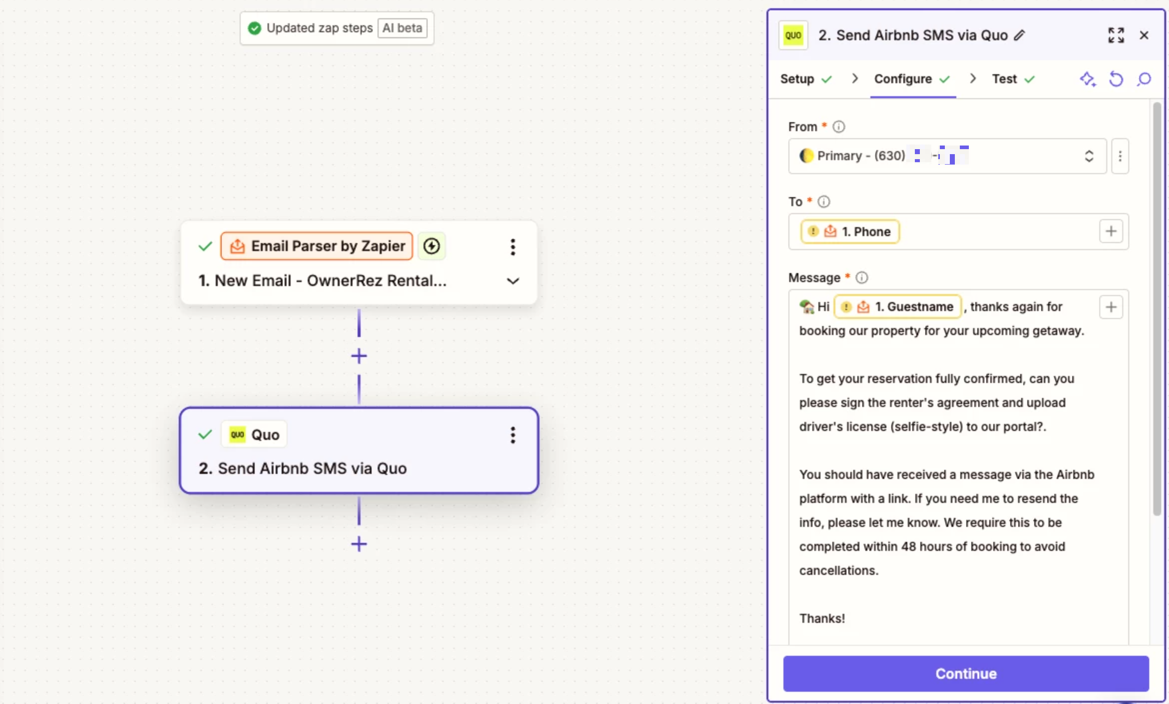 Setup with 2 inboxes - one for Airbnb Zap and another inbox for the rest (as text messages varies based on channel)