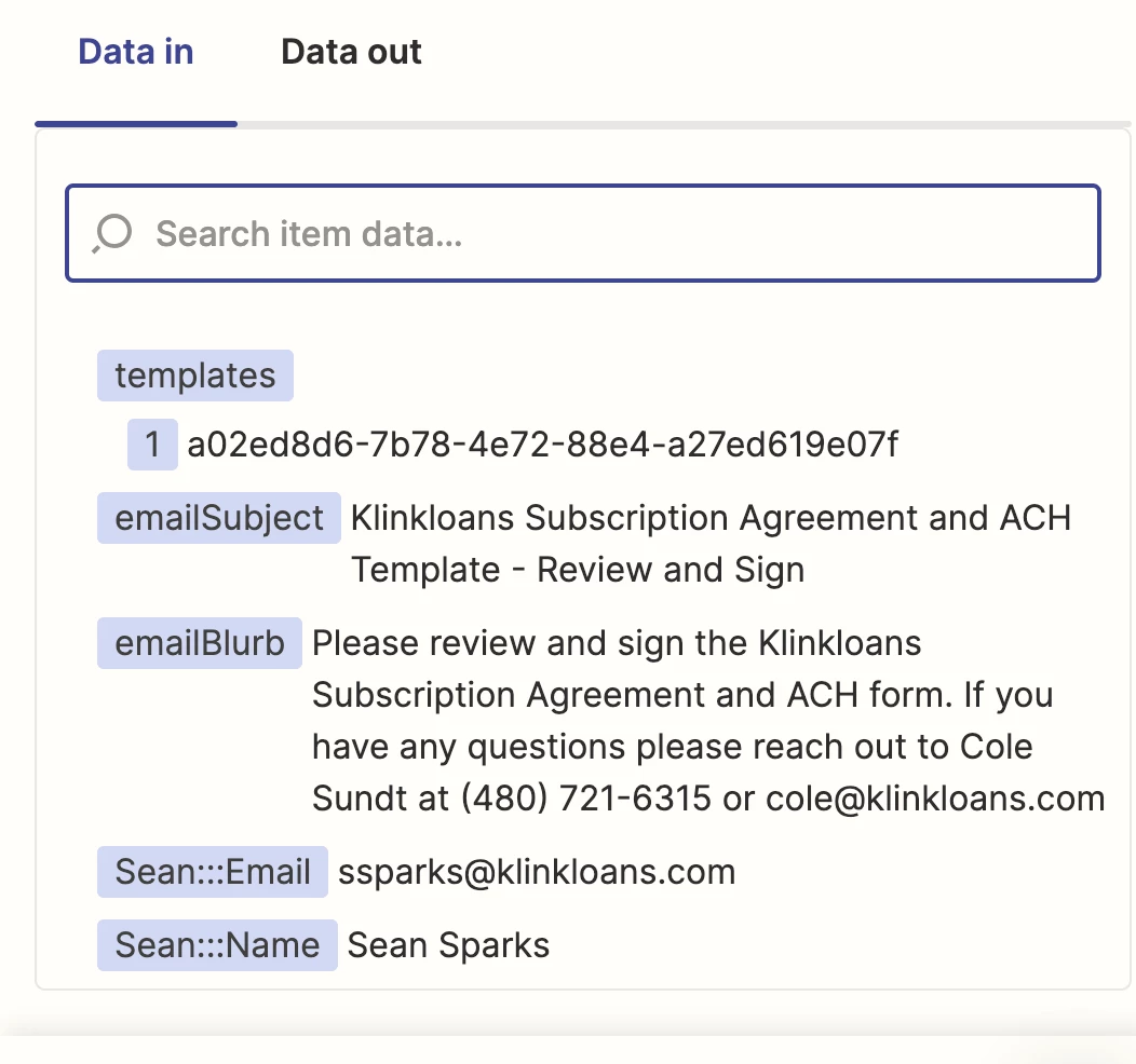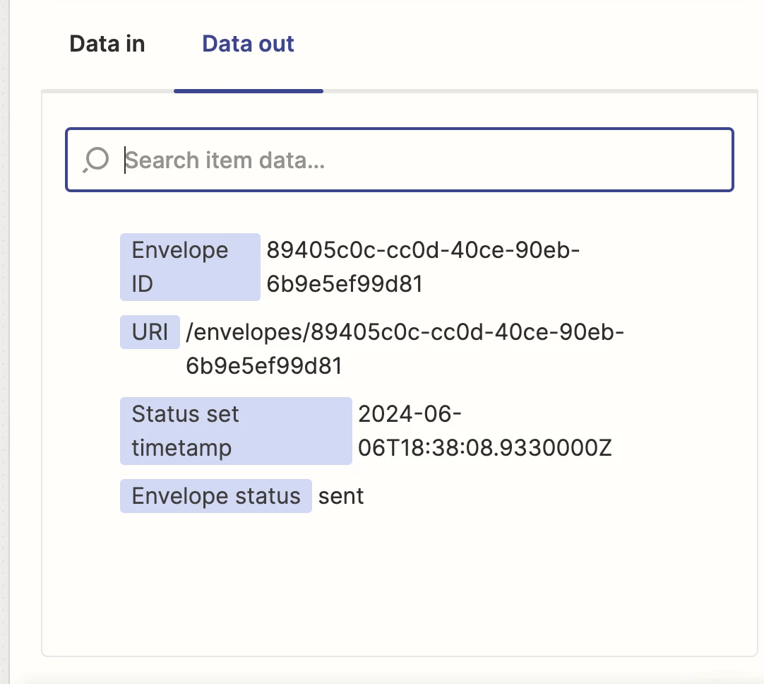 I recently created a Zap to send an “Signature Envelope” from docusign. The data is being pulled from a gravity form, and is properly matched up to the template fields from Docusign. The “Data In” section is correct but the “Data out” is left blank - see screen shots below. When the signature envelope is sent it is blank. Any ideas on how to fix this?