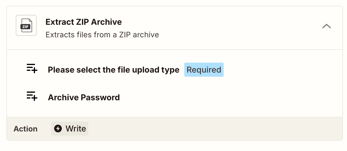 For that you have to use a third party tool to unzip them. You can try using Zip archive API to unzip the files- https://zapier.com/apps/archive-api/integrations