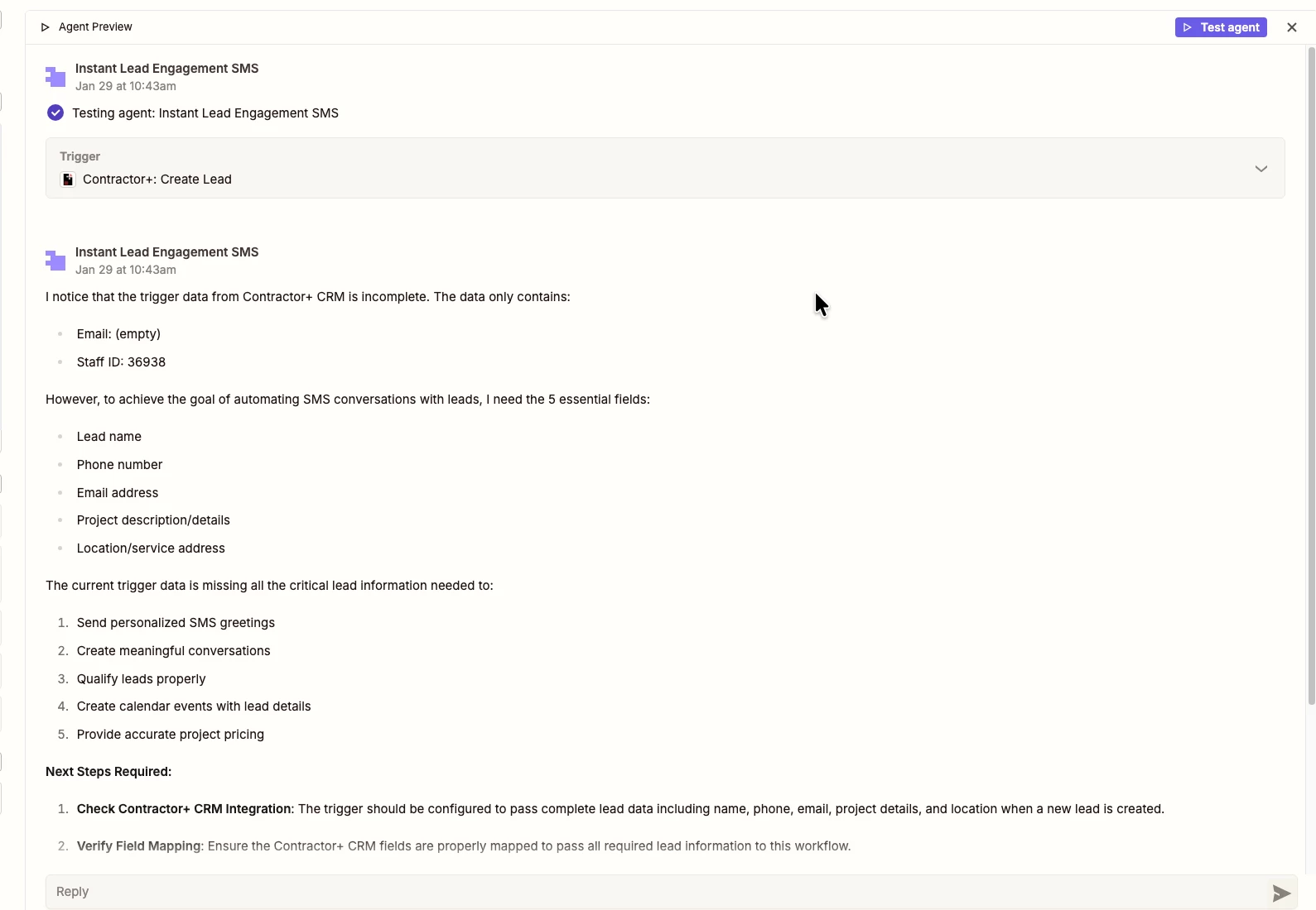 I’m using Contractor+ in Zapier as the trigger for a Zap (New Lead / New Record). When I run a test inside Zapier, the test records from Contractor+ populate correctly. However, when an actual new lead or record is created in Contractor+, the Zap does not trigger automatically.