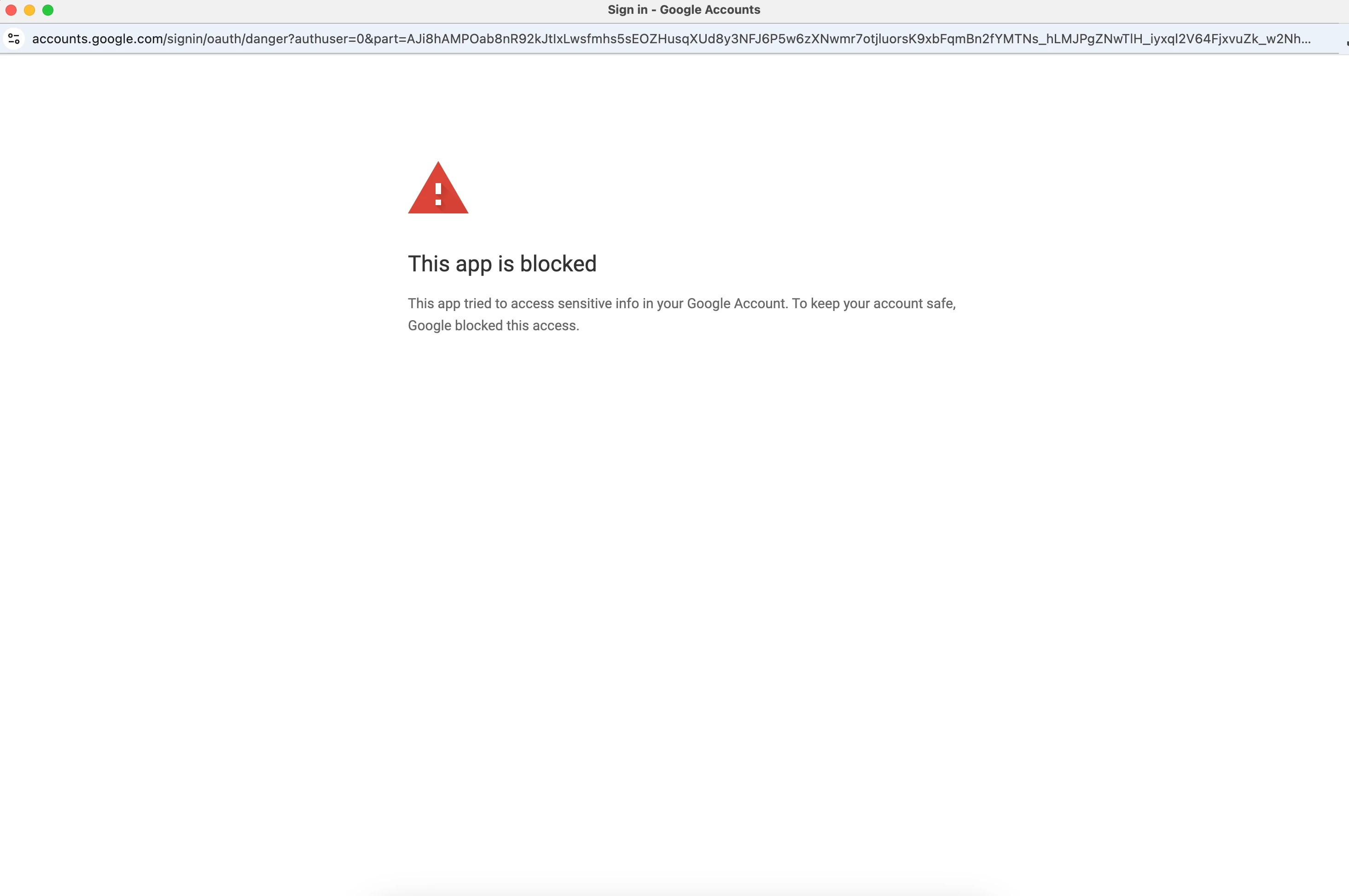 I am using zapier central, and when I am on any google product I get the error in the screenshot (app is blocked). Is there something I need to do in gSuite or is this a known bug?