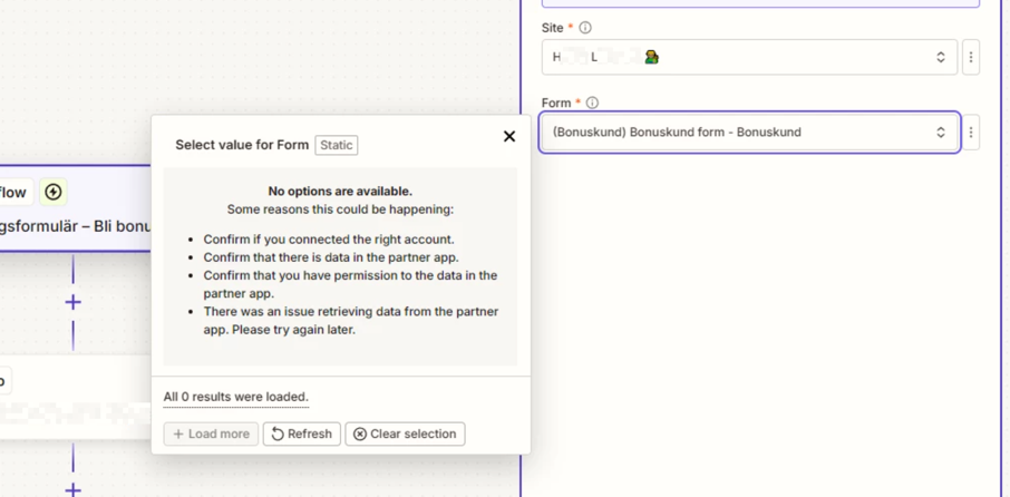 So the short answer is: this is usually not just you it is often caused by the form not being freshly published, not having a fresh submission, or Zapier not refreshing the Webflow form list yet.