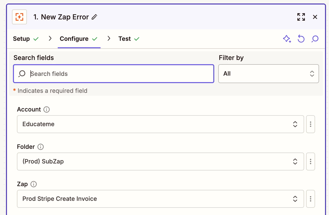 However, the Zap Prod Stripe Create Invoice is encountering errors that are not triggering the New Zap Error step.