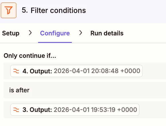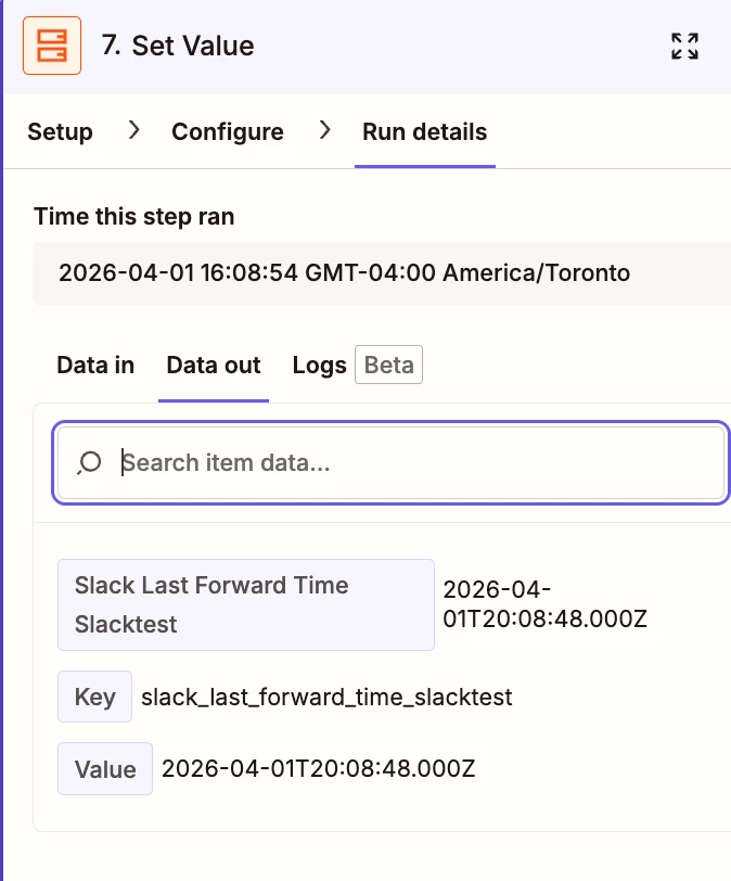 I am tracking Slack message timestamps in Zapier Storage to prevent zap from running until a duration has passed. I noticed that no matter what I do, the zap filter always evaluates to true.