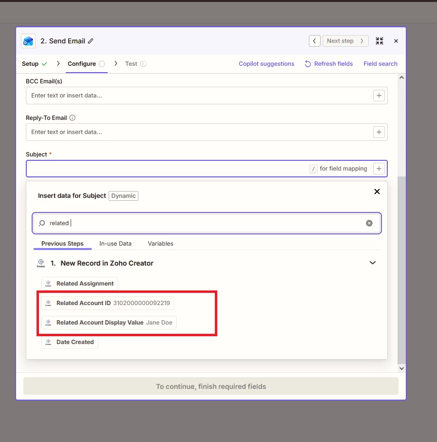 Help link about how to use a live Zap Run as a Zap trigger example to help you configure Zap action steps: https://help.zapier.com/hc/en-us/articles/35632951078029-Use-previous-Zap-runs-as-trigger-test-records