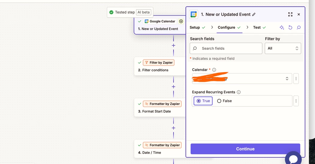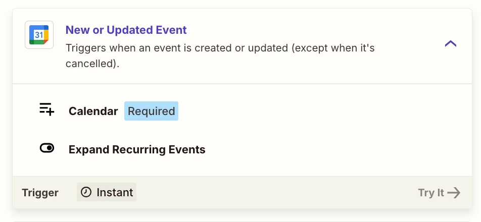 Zap trigger: GCal - New or Updated Events